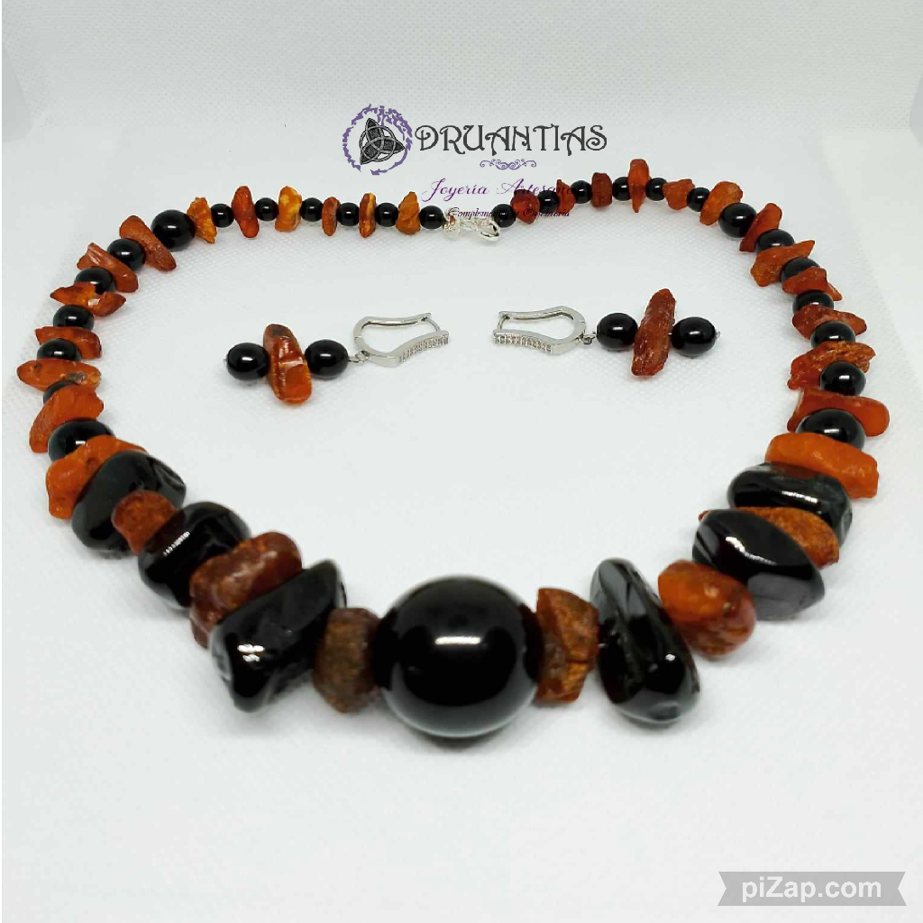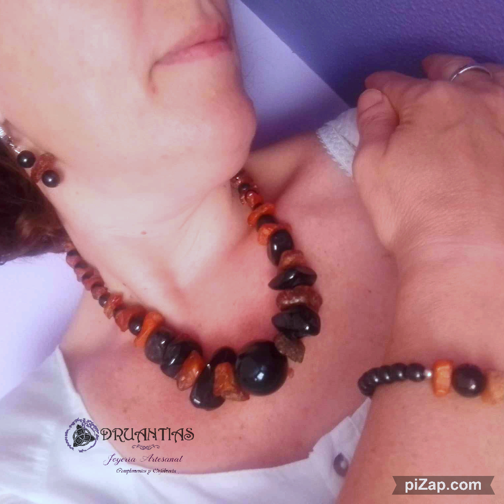 Gargantilla en azabahce y ambar del báltico en plata de ley 925
