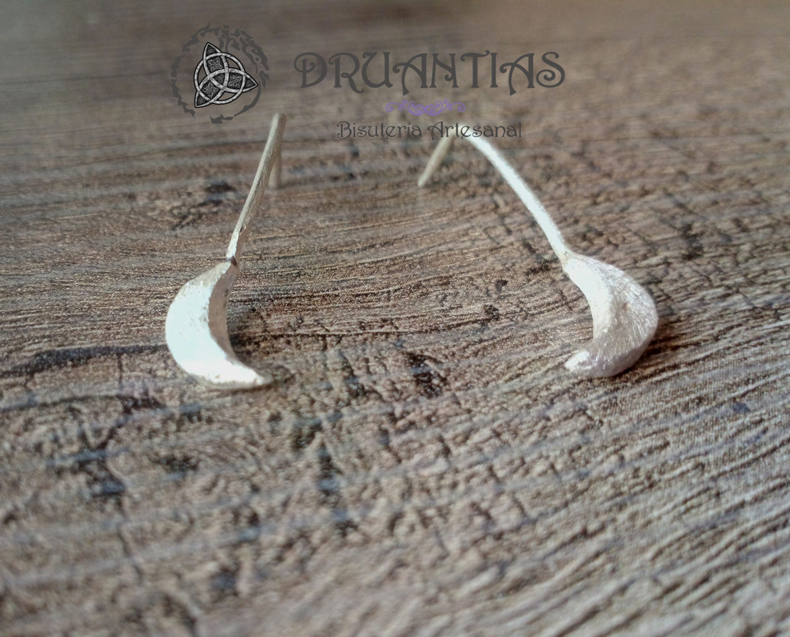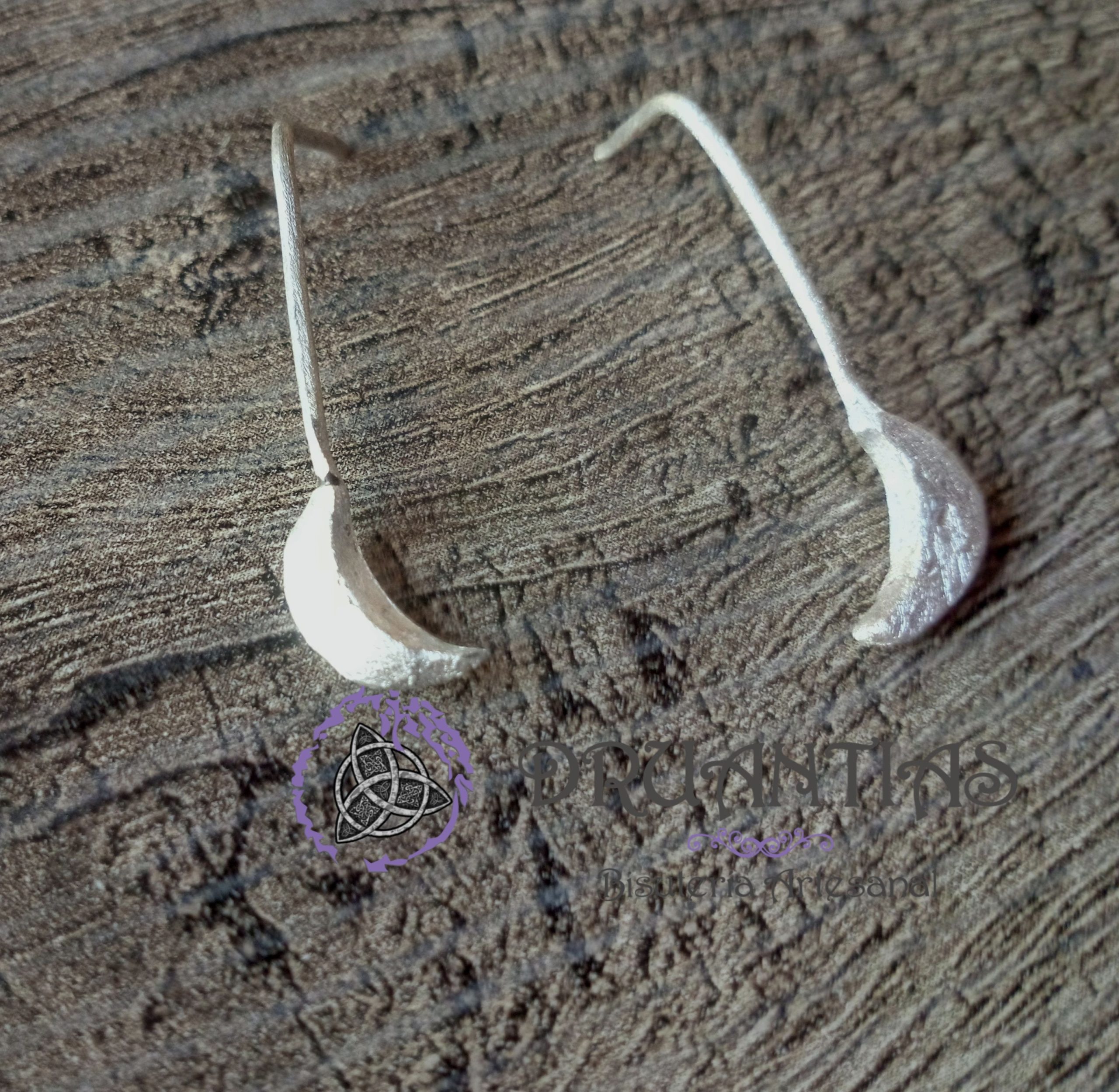Pendientes realizados de forma artesanal en plata base 950, moldeado, fundido, soldado, pulido, abrillantado totalmente a mano en forma de Luna.